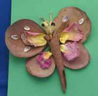 You could use paint or draw a butterfly shape and stick things onto its wings.