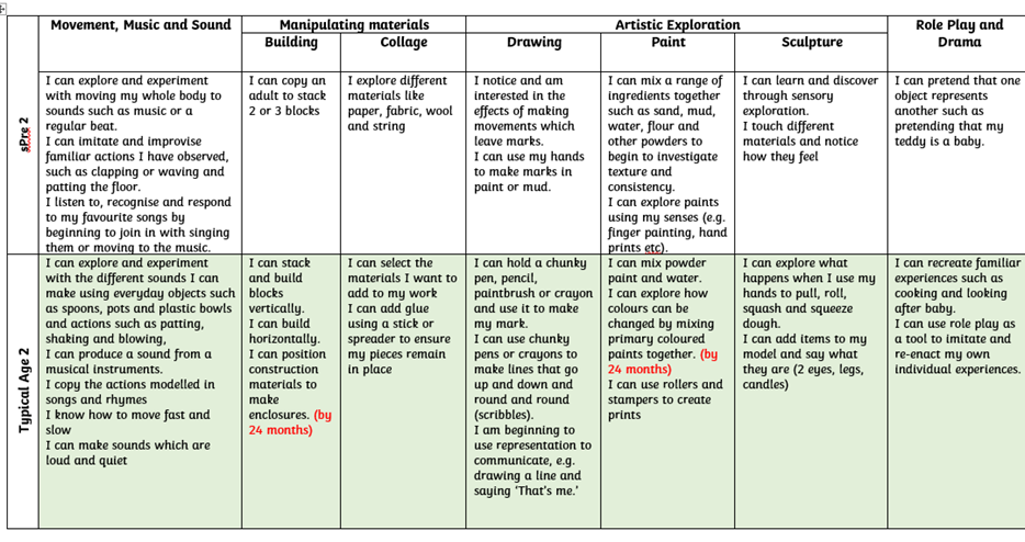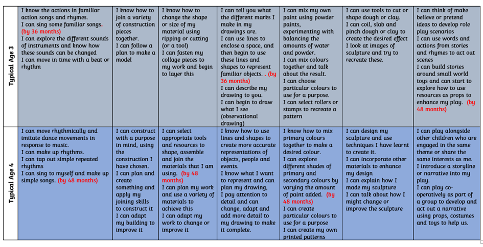 Educational Programme : The development of children’s artistic and cultural awareness supports their imagination and creativity. It is important that children have regular opportunities to engage with the arts, enabling them to explore and play with a wide range of media and materials. The quality and variety of what children see, hear and participate in is crucial for developing their understanding, self-expression, vocabulary and ability to communicate through the arts. The frequency, repetition and depth of their experiences are fundamental to their progress in interpreting and appreciating what they hear, respond to and observe.