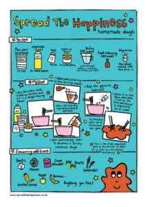 Below is a quick and easy recipe you can use for you ‘Dough Disco’ activities at home. Jazz up your playdough by adding colour, aroma (using scented oils) and texture e.g. glitter to make it even more exciting! (click the picture below to expand the image)